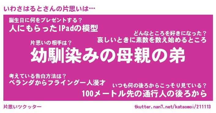 | 胡散臭い通販商品みたいなあだ名 | 『必ず成功するブレスレット…その名も「いわさはると」』 |