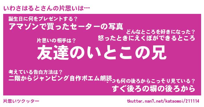 | 女子向けラノベタイトル風あだ名 | 『誰かこのいわさはるとを説明してください! ~契約から始まるウェディング~』 |
