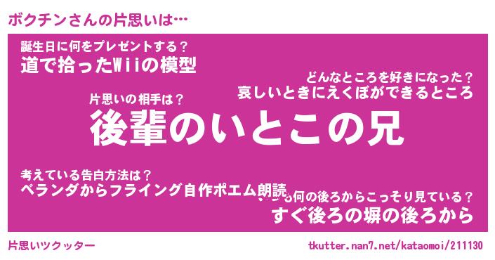 | 2回繰り返すあだ名 | 『ボクボク』『ボボクク』『ぬるぬる』 |