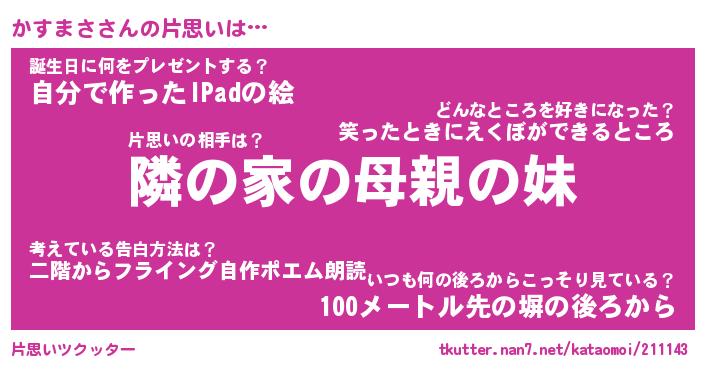 | 意味不明あだ名 | 『ペロリンかすまさ』『永久保存かすまさ』 |