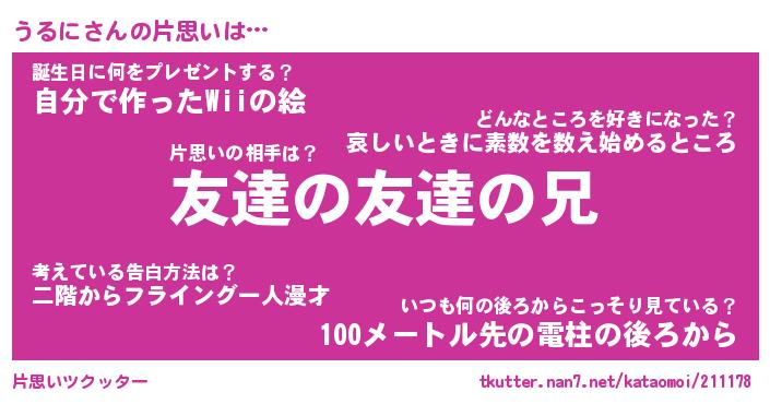 | 意味不明あだ名 | 『ペロリンうるに』『うるにフォーエバー』 |
