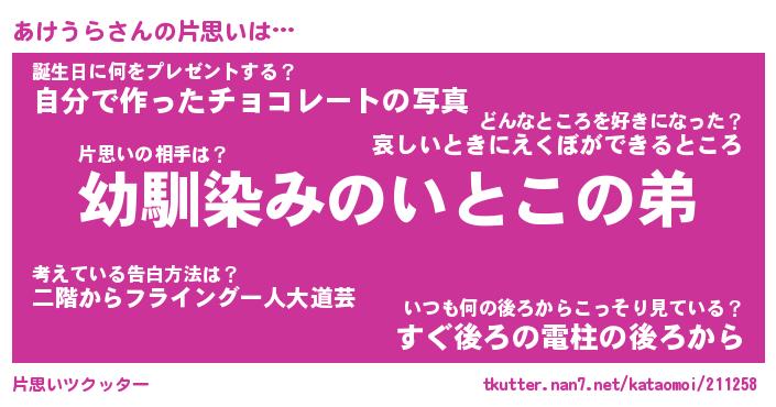 | ヘコむあだ名 | 『あけにゅー』『牛乳』『あけぷりん』 |