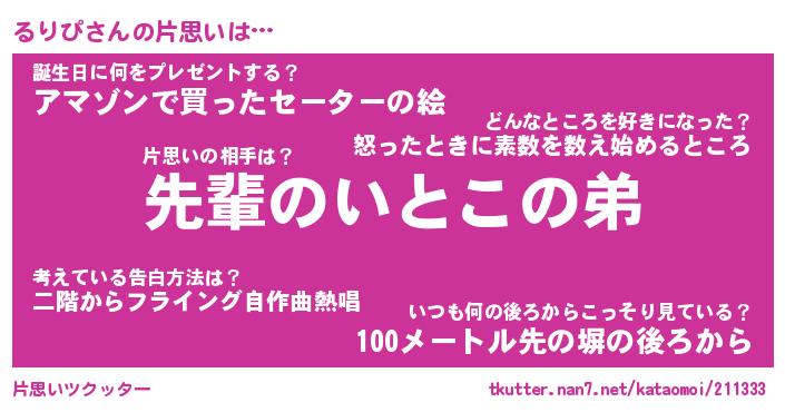 | 胡散臭い通販商品みたいなあだ名 | 『モテモテ間違いなし水晶球…その名も「るりぴ」』 |