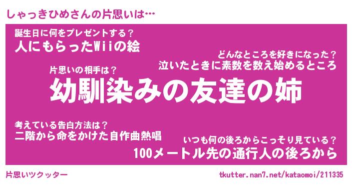 | 男性向けラノベタイトル風あだ名 | 『しゃっきひめの憂鬱』 |