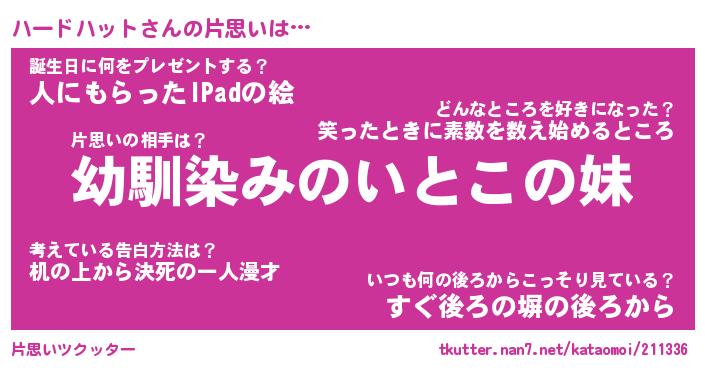 | 女子向けラノベタイトル風あだ名 | 『(仮)ハードハットのやんごとなき事情』 |