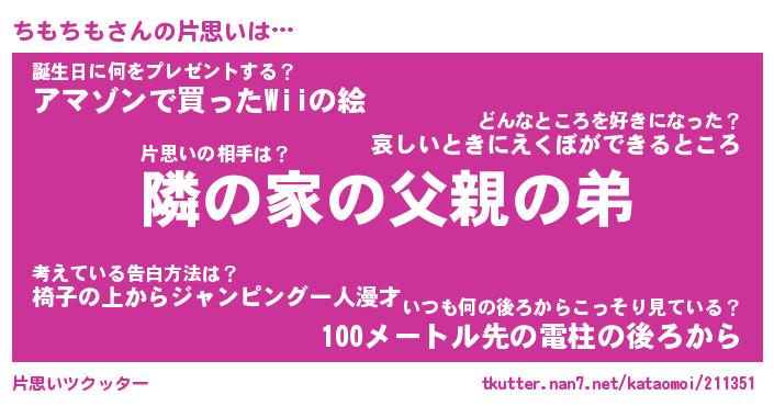 | ヘコむあだ名 | 『ちもにゅー』『豆乳』『ちもぷりん』 |