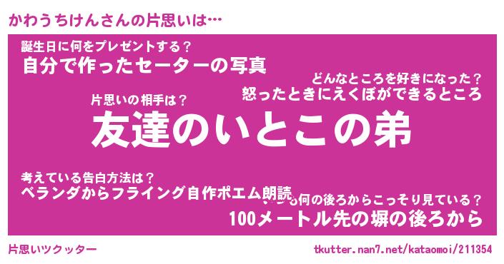 | 恥ずかしいあだ名 | 『プリティーかわうちけん』『かわっちょ』 |
