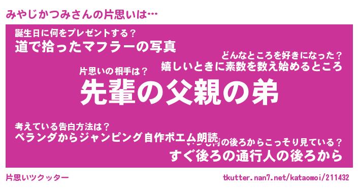 | 胡散臭い通販商品みたいなあだ名 | 『モテモテ間違いなし水晶球…その名も「みやじかつみ」』 |