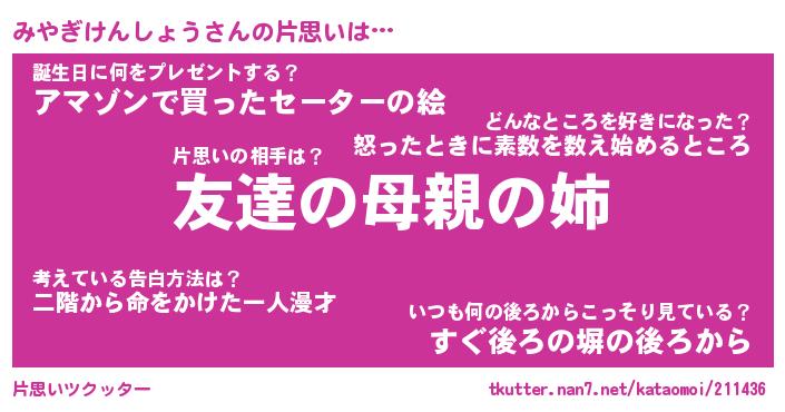 | ヘコむあだ名 | 『みやにー』『酢こんぶ』『みやっぺ』 |