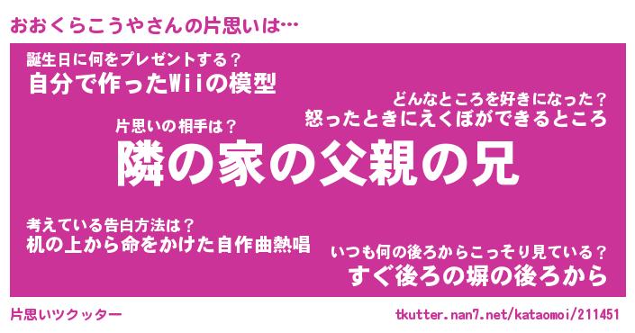 | 男性向けラノベタイトル風あだ名 | 『おおくらこうやの憂鬱』 |
