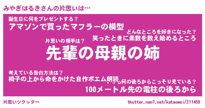 | ヘコむあだ名 | 『みやにー』『なまこ酢』『みやを』 |