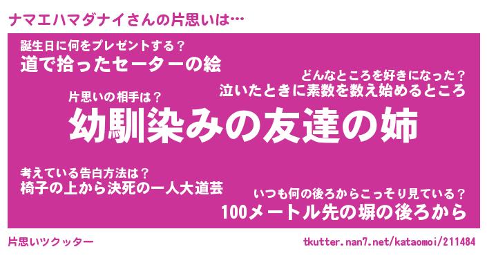 | 胡散臭い通販商品みたいなあだ名 | 『必ず成功する霊験あらたかなお札…その名も「ナマエハマダナイ」』 |