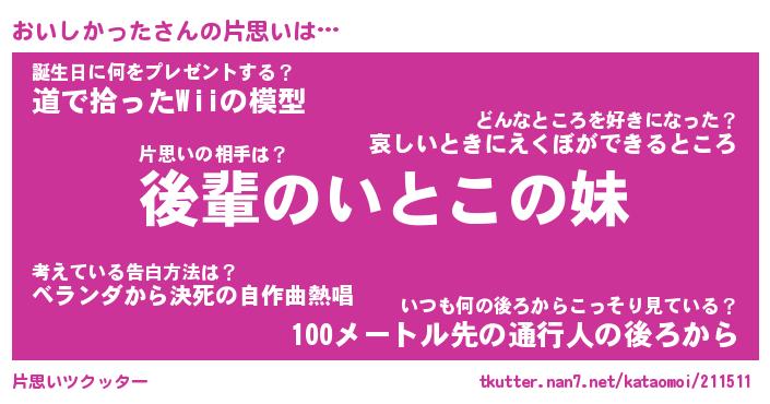 | ヘコむあだ名 | 『おいにゅー』『酢こんぶ』 |