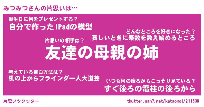 | ヘコむあだ名 | 『みつにー』『つくし』『みつお』 |