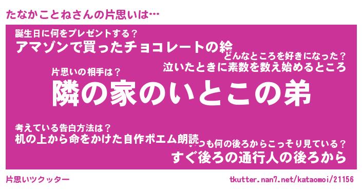 | 男性向けラノベタイトル風あだ名 | 『たなかことねの憂鬱』 |