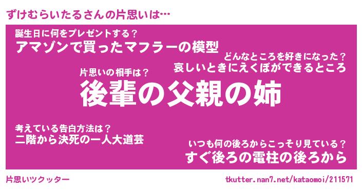 | 欧米人風あだ名 | 『マイケルずけむらいたる』 |