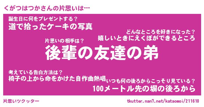 | ヘコむあだ名 | 『くがっふぃ~』『牛乳』『くがお』 |