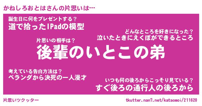 | ヘコむあだ名 | 『かねにゅー』『豆乳』『かねぷりん』 |