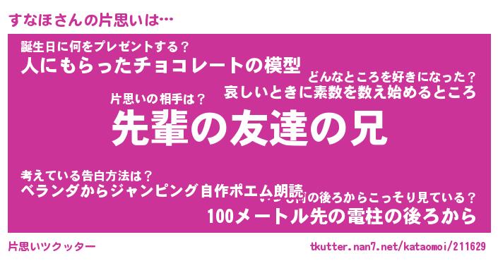| ヘコむあだ名 | 『すなもー』『つくし』『すなお』 |