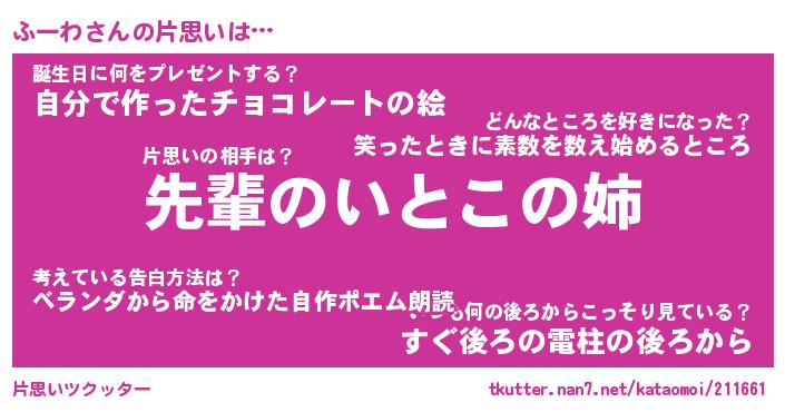 | 胡散臭い通販商品みたいなあだ名 | 『モテモテ間違いなし水晶球…その名も「ふーわ」』 |