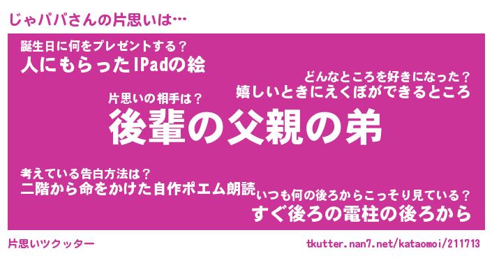 | 胡散臭い通販商品みたいなあだ名 | 『モテモテ間違いなし水晶球…その名も「じゃパパ」』 |