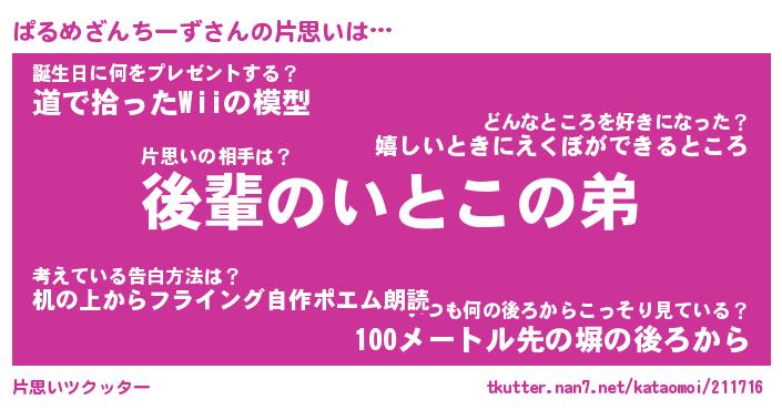 | ヘコむあだ名 | 『ぱるもー』『豆乳』『ぱるっ子』 |