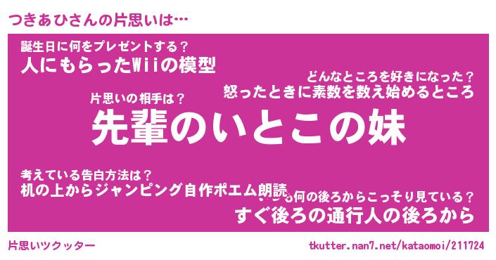 | ヘコむあだ名 | 『つきにゅー』『酢こんぶ』 |