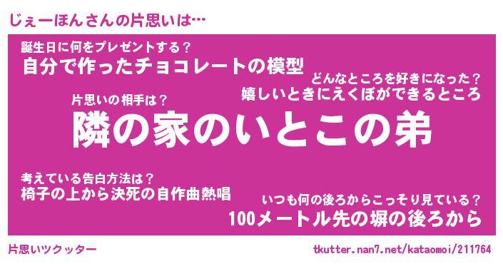 | ヘコむあだ名 | 『じぇにゅー』『つくし』『じぇを』 |