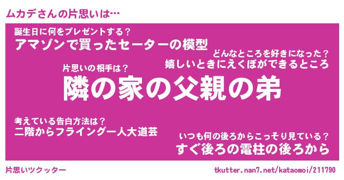 | ヘコむあだ名 | 『ムカふぇ~』『なまこ酢』『ムカを』 |