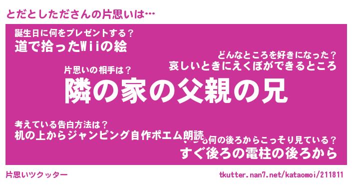 | 胡散臭い通販商品みたいなあだ名 | 『必ず成功する水晶球…その名も「とだとしただ」』 |