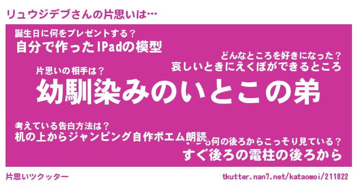 | ヘコむあだ名 | 『リュにゅー』『つくし』 |
