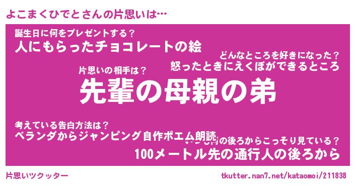 | 胡散臭い通販商品みたいなあだ名 | 『モテモテ間違いなしブレスレット…その名も「よこまくひでと」』 |