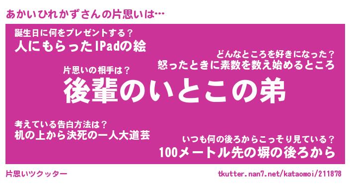 | ツイッター | あかいひれかずさんのツイッターID『namakemono_kun』 |