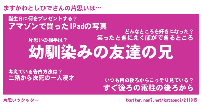 | 胡散臭い通販商品みたいなあだ名 | 『必ず成功する霊験あらたかなお札…その名も「ますかわとしひで」』 |