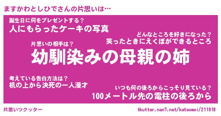 | ツイッター | ますかわとしひでさんのツイッターID『konnyaku_man』 |