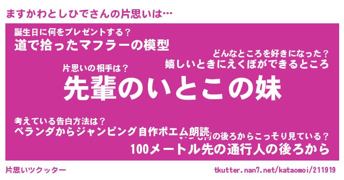 | 肩書あだ名 | 『ますかわとしひで店長』 |