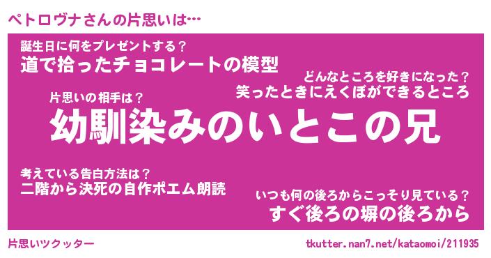 | ファンタジー風あだ名 | 『ペトフェル』『エターナルペトロヴナー』 |