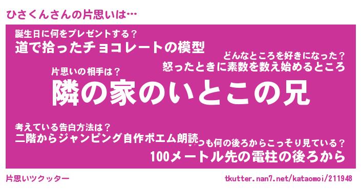 | ヘコむあだ名 | 『ひさにゅー』『牛乳』『ひさっ子』 |
