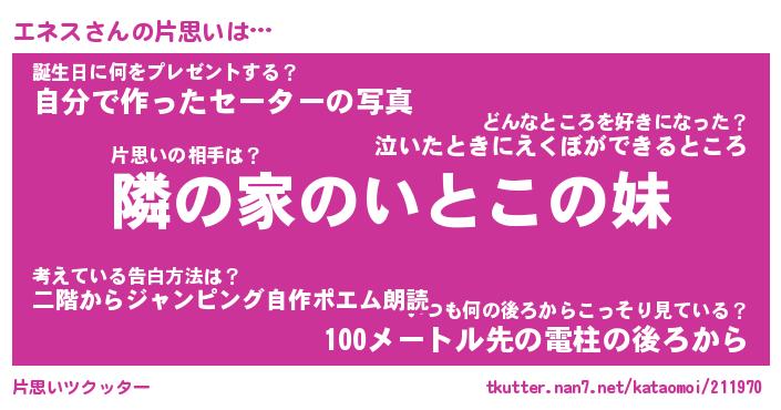 | ヘコむあだ名 | 『エネもー』『牛乳』『エネを』 |