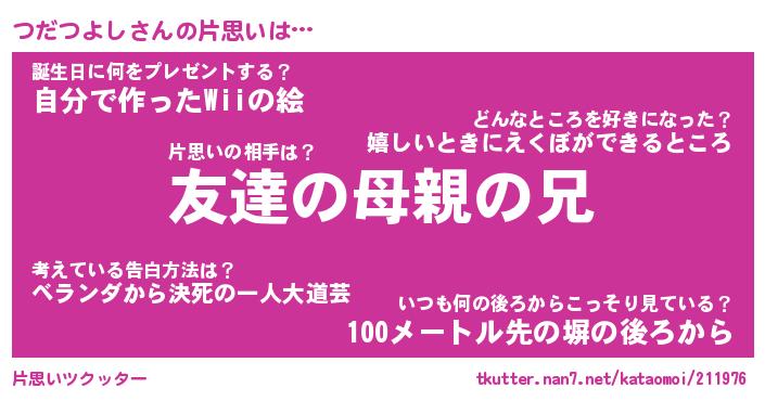 | ヘコむあだ名 | 『つだにー』『牛乳』『つだぷりん』 |