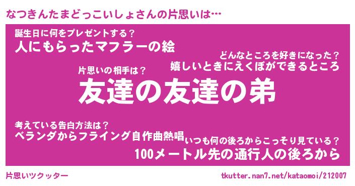 | 胡散臭い通販商品みたいなあだ名 | 『億万長者になれる霊験あらたかなお札…その名も「なつきんたまどっこいしょ」』 |