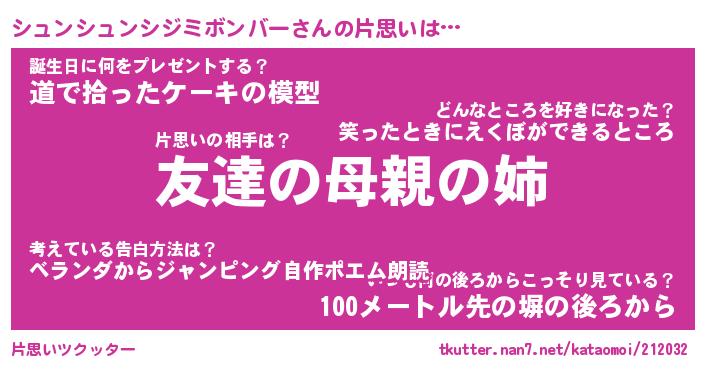 | ヘコむあだ名 | 『シュふぇ~』『つくし』『シュ太郎』 |