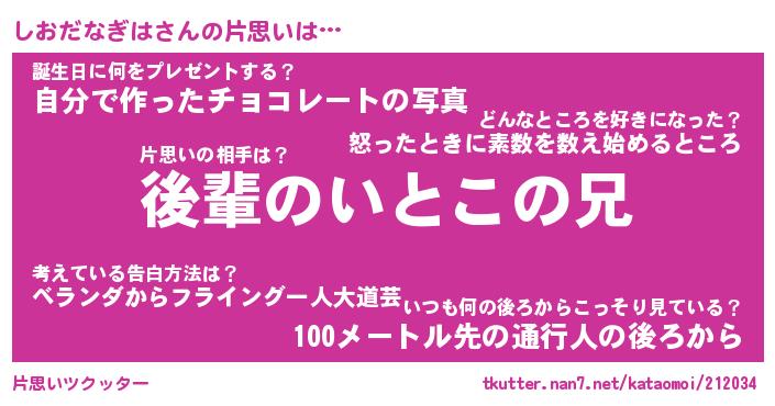 | ヘコむあだ名 | 『しおにゅー』『牛乳』『しおお』 |