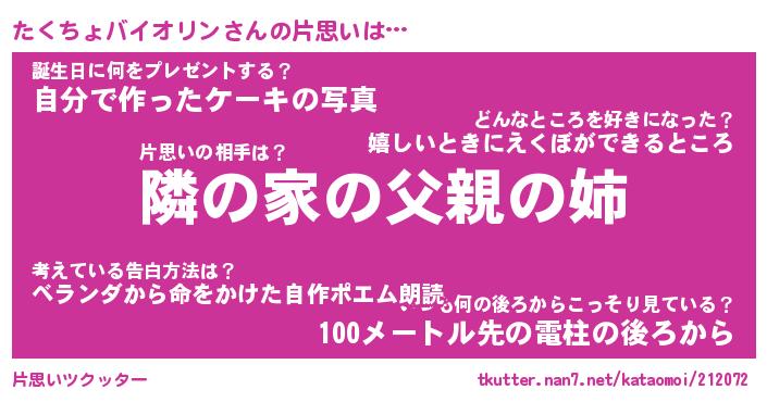 | 男性向けラノベタイトル風あだ名 | 『たくちょバイオリンの憂鬱』 |