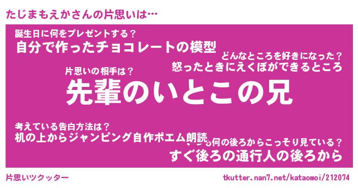 | 男性向けラノベタイトル風あだ名 | 『たじまもえかの憂鬱』 |