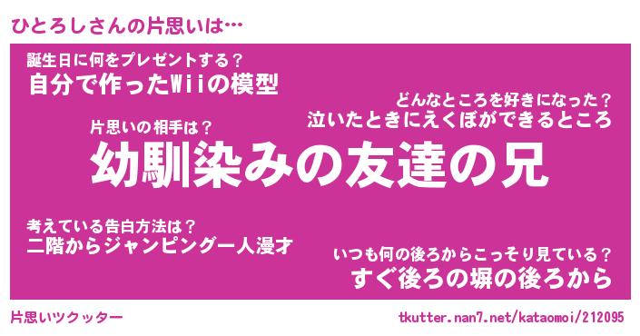 | ヘコむあだ名 | 『ひともー』『牛乳』『ひとぷりん』 |