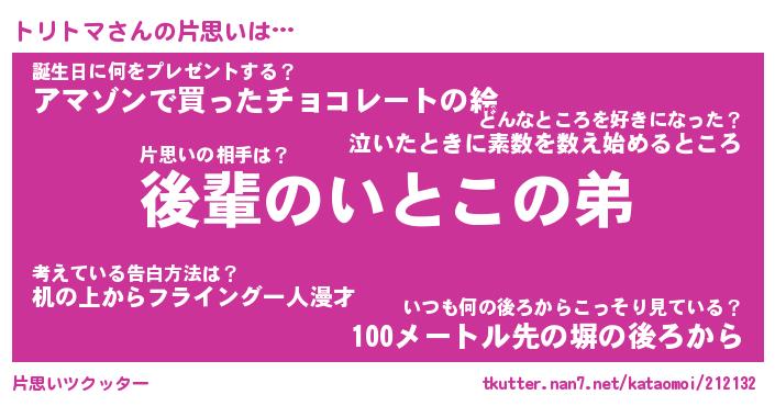 | 意味不明あだ名 | 『ペロリントリトマ』『永久保存トリトマ』 |