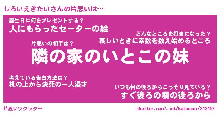 | 2回繰り返すあだ名 | 『しろしろ』『ししろろ』『うねうね』 |
