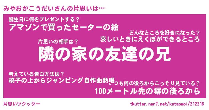 | 胡散臭い通販商品みたいなあだ名 | 『モテモテ間違いなし霊験あらたかなお札…その名も「みやおかこうだい」』 |