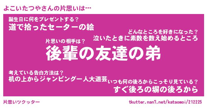 | 女子向けラノベタイトル風あだ名 | 『よこいたつや姫と円卓の騎士』 |